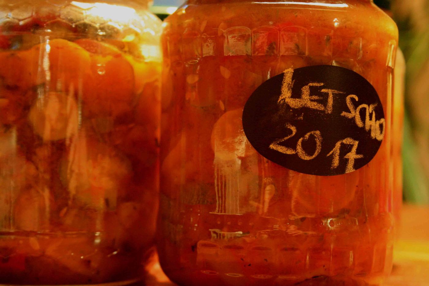 Gleich einen großen Topf Letscho kochen und das Letscho (ohne Würstchen) in sterilisierte Schraubgläser heiss einfüllen. Wichtig: Sehr sauber arbeiten und die Flüssigkeit muss das Gemüse bedecken! So heiss wie möglich einfüllen. Sofort verschliesssen. Im Winter ein Glas öffnen und den Sommer schmecken…